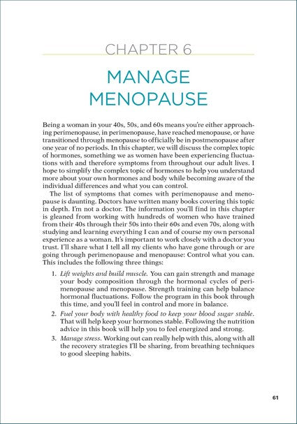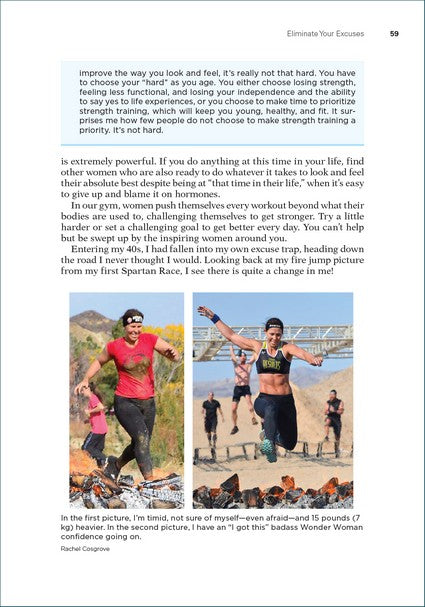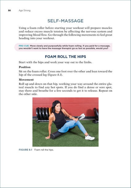 Part I. Strength Training in Your 40s and Beyond Chapter 1. Why Strength Train? Chapter 2. The Cardio Conundrum Chapter 3. Lifestyle Habits Part II. Prepare for Positive Change Chapter 4. Set Powerful Goals Chapter 5. Eliminate Your Excuses Chapter 6. Manage Menopause Chapter 7. Record Your Progress Part III. The Exercises Chapter 8. Warm-Up Chapter 9. Core Chapter 10. Upper Body Chapter 11. Lower Body Chapter 12. Power Development, Finishers, and Metabolic Intervals Part IV. The Age Strong Program Chapter 13. Program Principles Chapter 14. The Base Phase Chapter 15. The Build Phase Chapter 16. The Stronger Phase Chapter 17. The Age Strong Phase Chapter 18. Metabolic Interval Workouts Epilogue: Focus and Commit